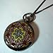 ★アンティーク調お花のモザイク風ペンダント懐中時計【ブラウン】 Fix